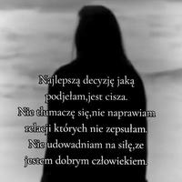 🔷Jeśli zamierzasz pisać głupoty to nie marnuj proszę mojego czasu...Dziękuję 😊 🔷Nie szukam męża, chłopaka, kochanka...itd 🤨 🔷Szukam ciekawych ludzi wartych poznania... 😍 🔷JAK SZANOWAĆ SIEBIE 1. Przestań gonić za tymi, którzy nie gonią za Tobą 2. Nie błagaj o uwagę 3. Mów tylko tyle, ile naprawdę trzeba 4. Inwestuj w siebie i rób to, co Cię uszczęśliwia 5. Zawsze dawaj z siebie wszystko 6. Realizuj swoje cele i bądź człowiekiem czynu ... 7. Szanuj swój czas 8. Nie zostawaj w relacji, w której nie czujesz się szanowany i doceniany. Odsuń się. 9. Naucz się wydawać pieniądze na siebie bez wyrzutów sumienia 10. Czasem bądź mniej dostępny... 11. Traktuj innych tak, jak sam chcesz być traktowany 12. Dwa nieodebrane połączenia wystarczą. Jeśli komuś zależy, oddzwoni 13. Bądź naprawdę dobry w tym, co robisz Ale pamiętaj - pozostań dobrym człowiekiem. 🔷Otaczaj się ludźmi, którzy cenią Twoją obecność. Poświęcaj czas tym, którzy kochają Cię szczerze, a nie tym, którzy pamiętają o Tobie tylko wtedy, gdy czegoś potrzebują. 🔷Ale przede wszystkim – nie zapominaj o sobie. Twoje życie nie jest tylko dla innych. Masz prawo żyć tak, jak chcesz, dbać o swoje szczęście i stawiać siebie na pierwszym miejscu. Nie jesteś tu po to, by spełniać cudze oczekiwania – jesteś tu po to, by żyć po swojemu.